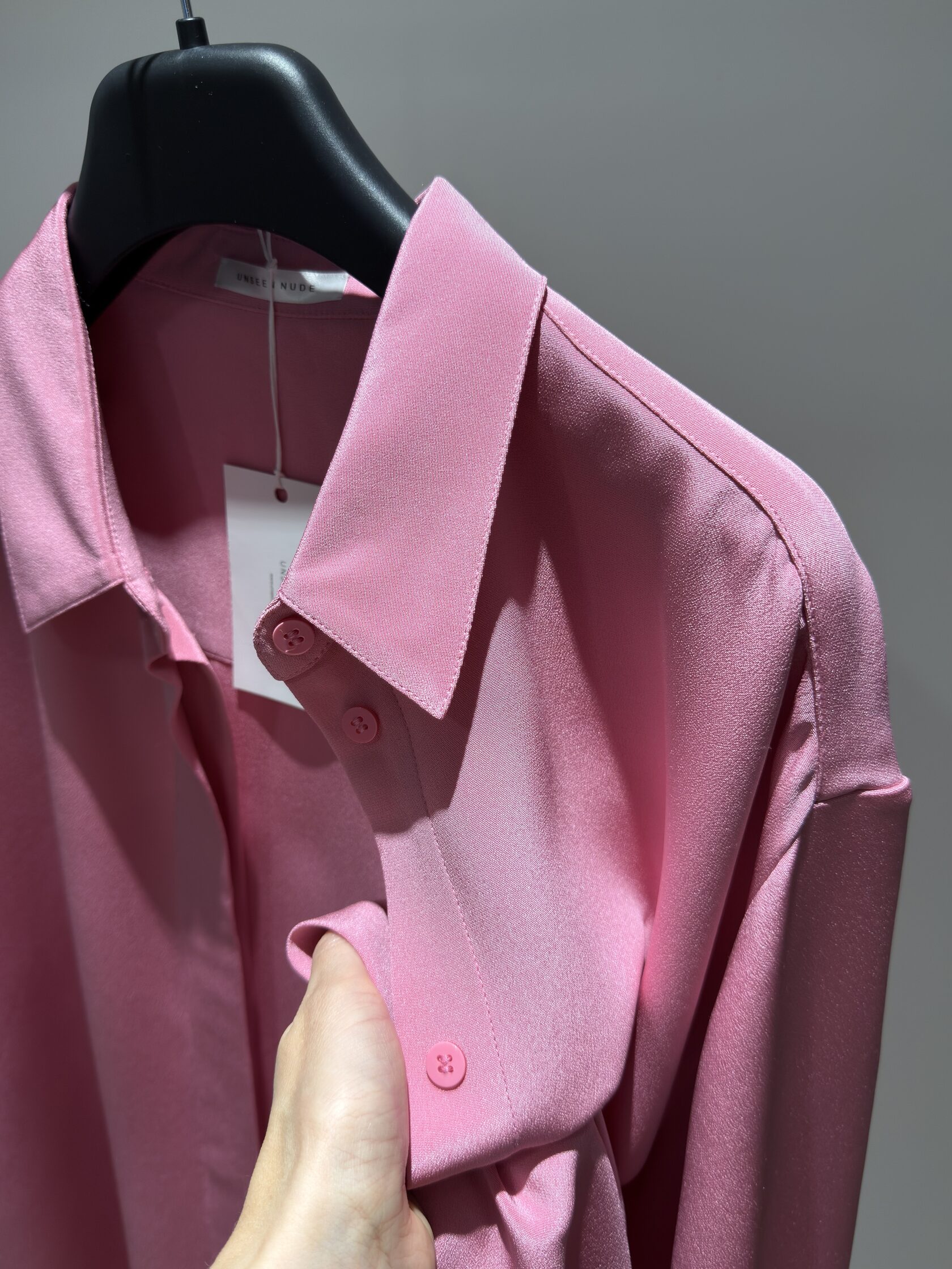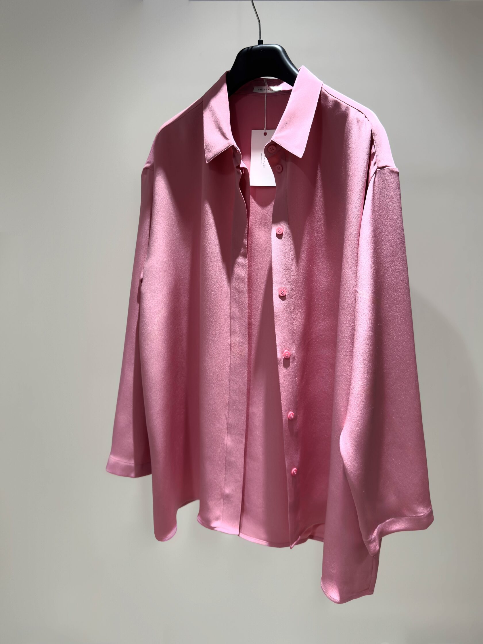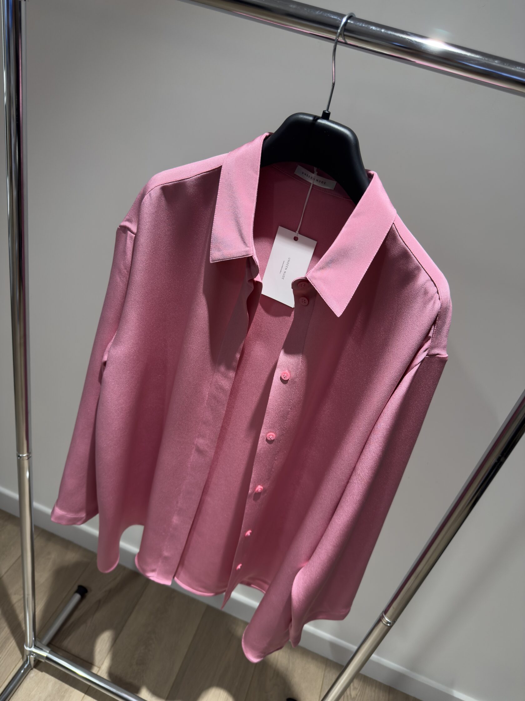 Блузка из полупрозрачного, воздушного шелка, розового цвета. Легкая модель с длинным воротником аскот, который можно заплести в бант, галстук или оставить расслабленным на выпуск.